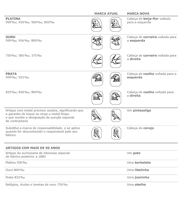 The new marks from the testing office come into effect on January 1, 2021. As of that date, the testing marks will have the following symbols specific to each precious metal and each legal detail:
